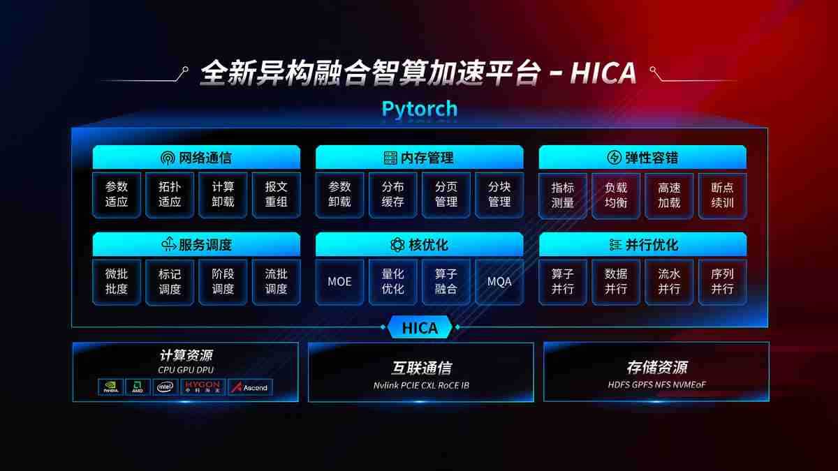 通过自研的服务层、、、中间适配层、、、以及调度编排算法,,,,采用数据并行、、、模型并行等多种并行方式,,,,把并行计算任务进行有效的分解,,,,使其分别由相应的软件栈和算力资源来承接。。当GPU资源变化,,,,HICA可以实时动态调度计算子任务并调整模型拓扑和架构,,,,以充分聚合各种算力资源。。